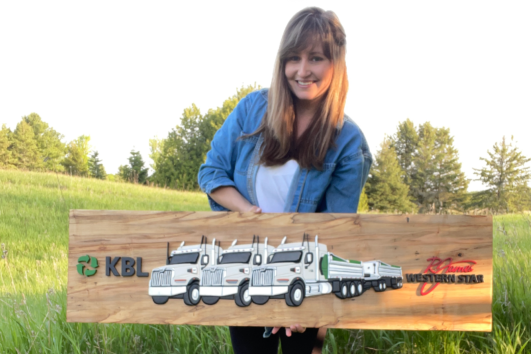 While the response from that piece was not overwhelming, it caught the eye of Dustin Hovius at RJames Western Star, who approached Lesley to craft a piece featuring the logo for Borealis Fuels. Still doing work for him today, this project was the beginning of an ongoing fruitful partnership between Lesley and Dustin.